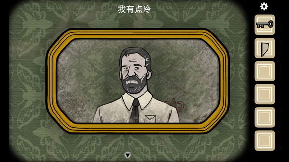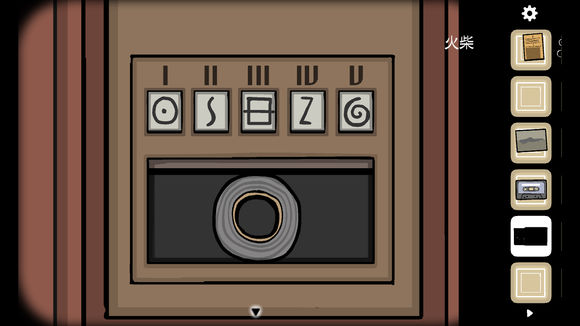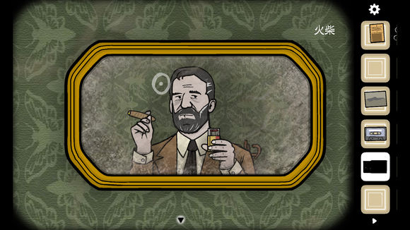 来到镜子面前,点燃雪茄烟,吸烟,每点击人物一次,会吐出一个符号,记下符号,来到柜子,打开下面的柜门,会看到一个五位密码的密码箱。输入密码后拿到胶布。