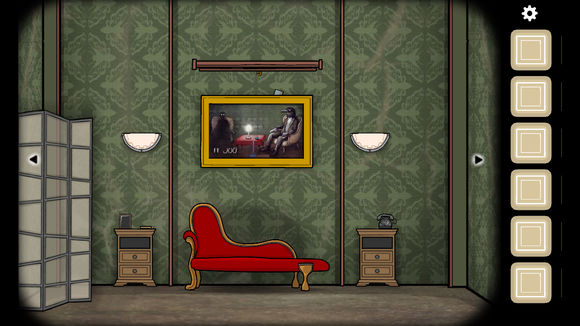 先收集照片碎片,相框上已经有一块了,沙发上面的画有第二块,门旁边的抽屉里有第三块,记得顺手拿到剪刀铅笔和衣架上的大衣。注意看门左侧的开关,把灯打开后去隔壁看,能看到灯里有第四块。去照镜子,会说有点冷。穿上大衣,女子一闪而过。回到门口会看到第五块照片落下。全部装到相框上。