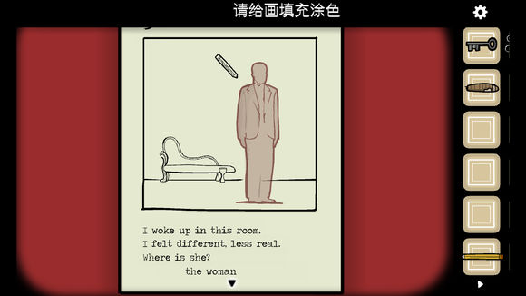 再打字机输入the woman后,会提示你上色,不需要上太精细,随便涂一涂就好。最后会出现一个钥匙的形状,上色后获得钥匙。这个钥匙可以打开柜子。