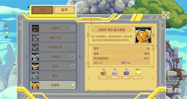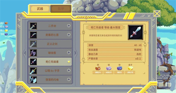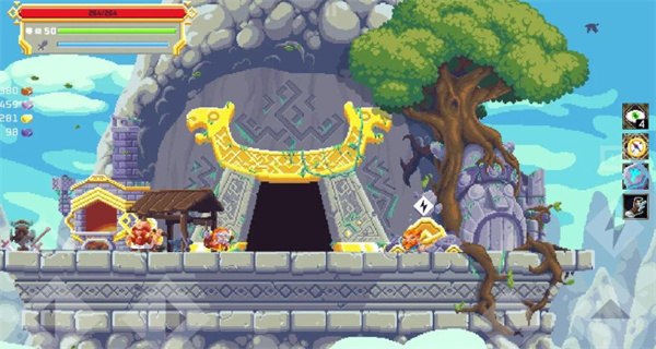1、游戏中有些地图提供属性加成供玩家选择。操作方面,主要涉及移动、攻击和跳跃,跳跃支持二段跳。武器和防具种类不多,但基本上在前三关就能收集齐全。