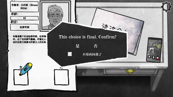 5、你可以通过查看每个的资料表,来决定这个人的生与死;