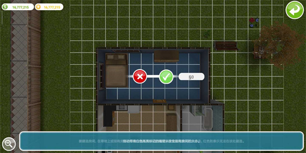 7、在格子上长按并拖拽出你需要的房间大小即可,建造好房间大小后你还可以在商店中购买各种装饰品装修房间