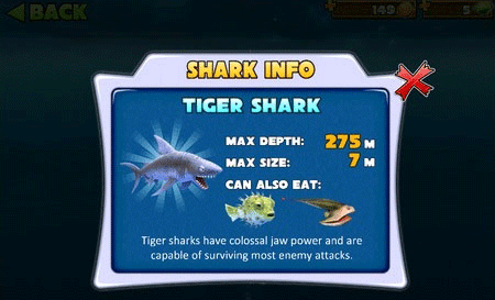 4. 拥有强大的升级系统,可以提升鲨鱼的速度、咬合力及生命值。