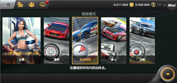 2、模式丰富,比赛模式、漂移玩法、跟踪模式、多人竞速、训练模式玩法自由选择。