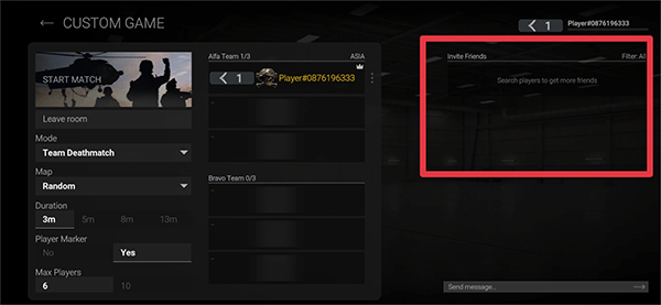 4、在自定义游戏模式中将左边游戏模式设定后,在右边邀请朋友中选择邀请好友即可。(好友只有通过添加验证后才会显示在右边)