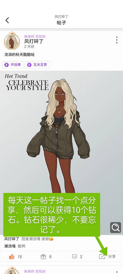 10、前面前面说了做任务的钻石保底只有40,所以你需要每天再分享一下,然后这样你的保守钻石就能每天有50个钻石。