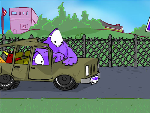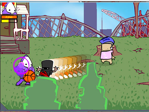 2、玩家可以举起垃圾桶、煤气罐,或者扔到马路边上任其被车流吞噬,让不听话的小孩懂得「做人的道理」;