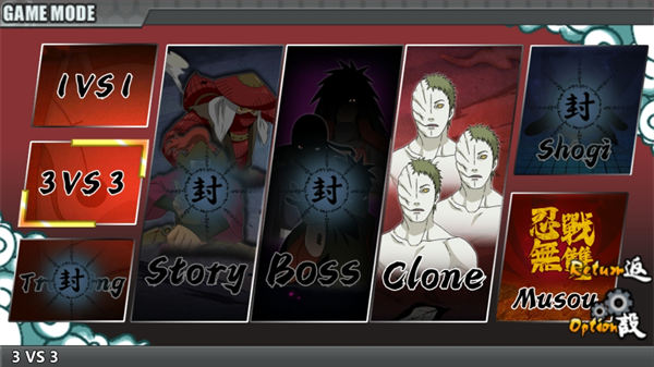 Clone:克隆模式,3vs3,同阵营的角色完全相同(默认启用忍具)