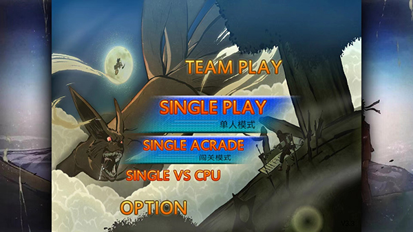 1、进入游戏主界面,包括【TEAM PLAY】联机模式、【SINGLE PALY】单人模式、【SINGLE ACRADE】闯关模式和【SINGLE VS CPU】人机对战模式,玩家可自行选择,这里以【单人模式】为例,