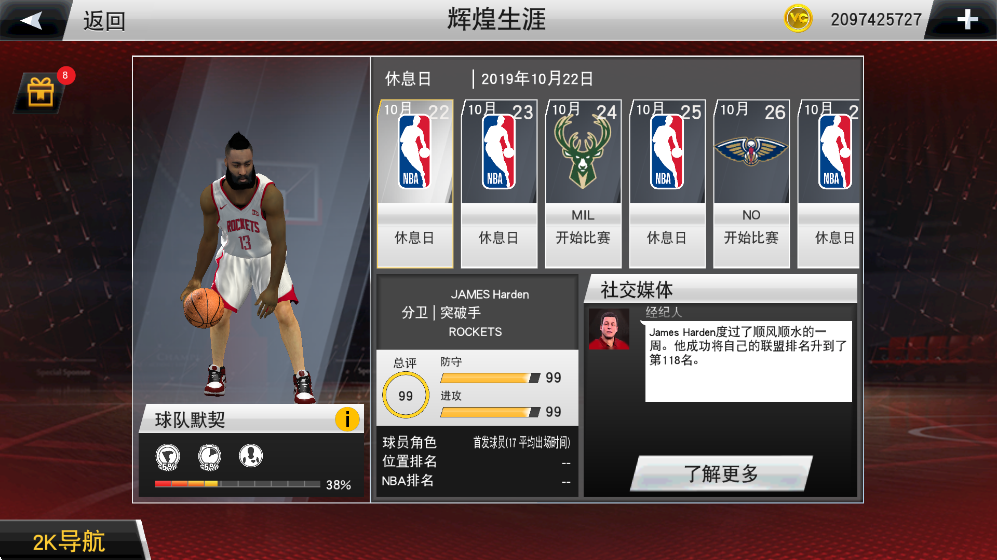 作为总经理掌管球队。负责阵容管理、球员探查、新秀选拔、预算把控等诸多事宜!