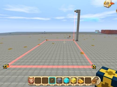 3、只要将两个测距仪放在一条直线上,就可以计算他们之间的距离,再也不用一个个数格子了!对于喜欢做超大型建筑的玩家来说,这个东西简直是福音啊。