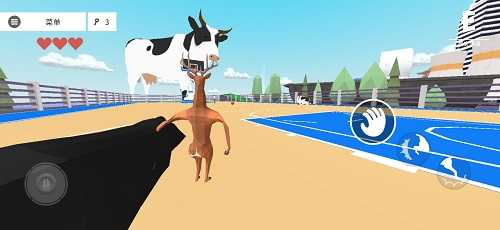 有人可能就疑惑了,奶牛去哪找?别急,整个地图里—共三只奶牛,复活的时候看见远处最大的牛,我们向那里跑过去,就会看见篮球场,里面有两个奶牛在玩耍,随便抓一只走就可以了。篮球场附近还有一只在外面的奶牛,抓这只去充数当然也有没有问题啦。最大那只奶牛我们抬不起来,所以就不用尝试去搬运它了。