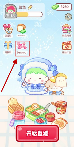 1、回到游戏主界面,点击屏幕左侧的Delivery按键就可以进入到点餐界面。