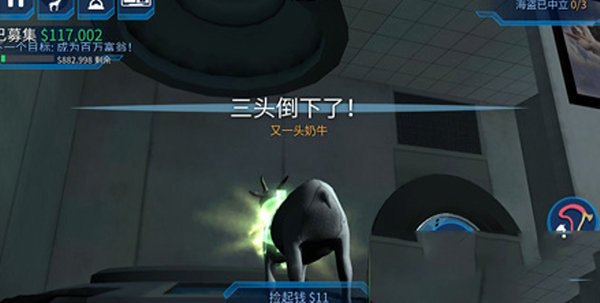 1、玩家来到试验室后会接到任务,进入试验室,这里我们需要进行四个实验,首先踩下中间的蓝色按钮,掉落下一头牛。