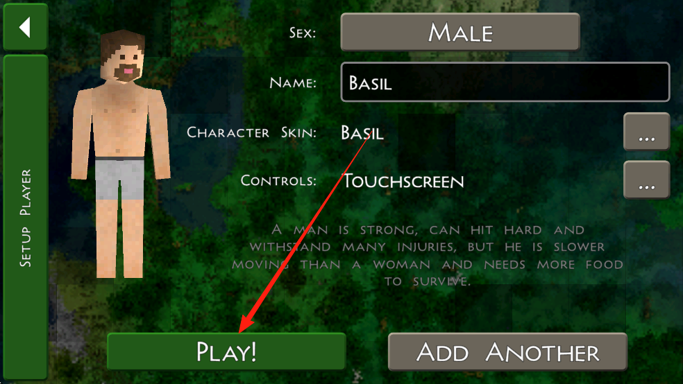 5、选择好之后,点击SETUP PLAYERS来创建角色,玩家可以自定义角色肤色、姓名和性别,选择好之后点击PLAY