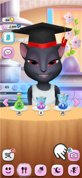 点击按键可以进入商店,在商店里可以购买汤姆猫所需的东西,如食物、衣服、家具等。