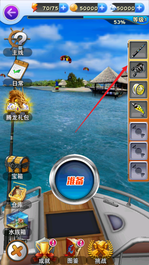 7、可使用金币或钻石购买更高级装备,大幅提升钓鱼成功率。