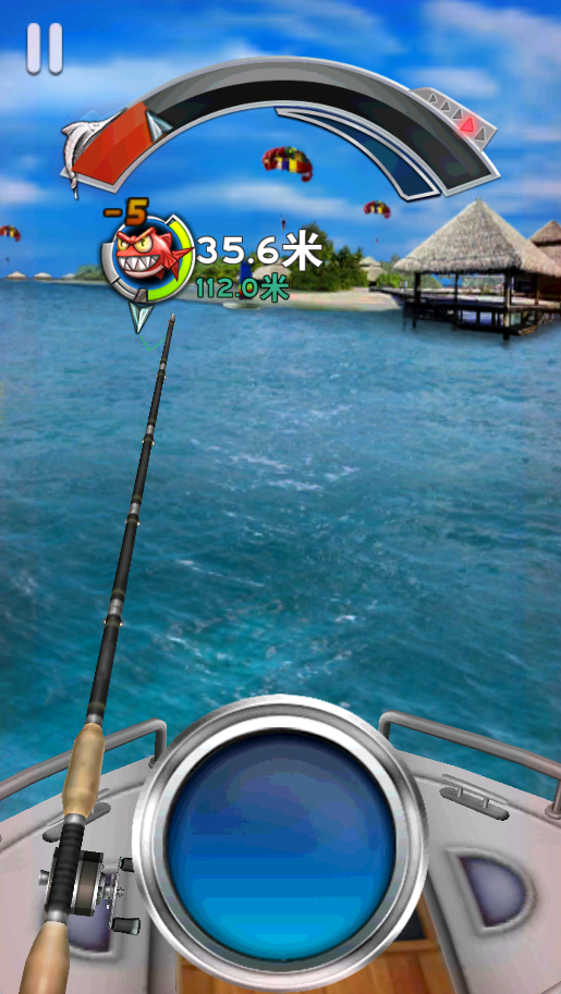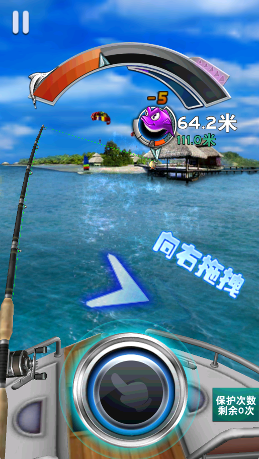 3、长按下方按钮收紧鱼线,松开可缓解拉力,反复操作积攒怒气值。