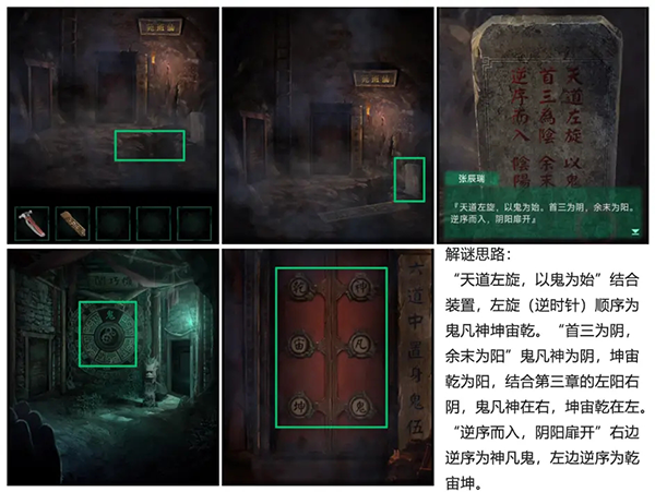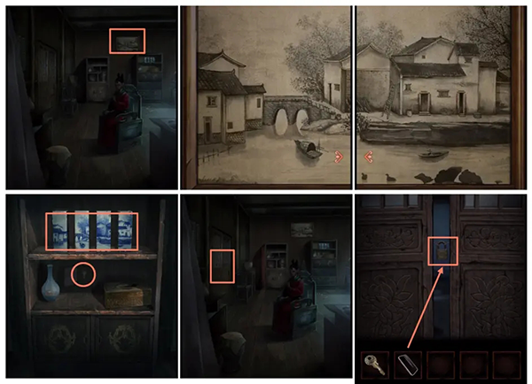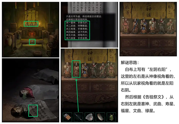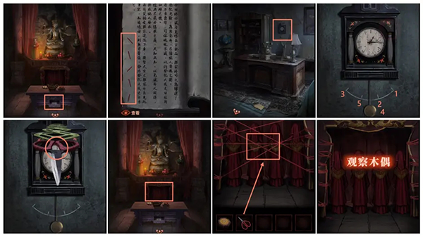 张辰瑞:根据《六转妙法录》,调整好墙上的仙女位置,根据仙女的姿态,解开柜子机关,拿到【线索纸】。