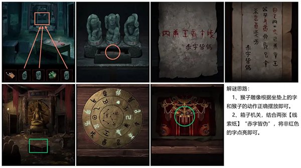 57、崔婉莺:将三个【猴子雕像】放到对应的位置上,拿到【线索纸】。