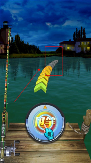 如何才能使其不断线呢?其实游戏屏幕的上方有个拉力条,拉力条将会控制玩家的节奏,在张力条的右侧,还有一个危险区域,这个区域意味着是我们拉力条的极限,当我们拉力条快到达满格的时候应该立即松手,否则鱼线就会断掉,鱼儿就会逃跑。