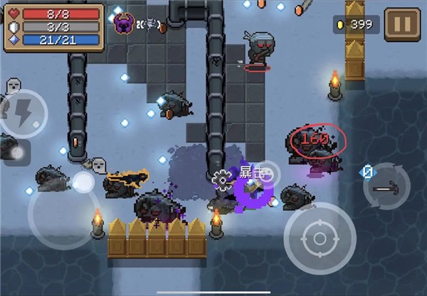 2、探索地牢击败所有黑暗势力,灵活走位躲避所有陷阱,进入战斗状态击杀所有敌人。