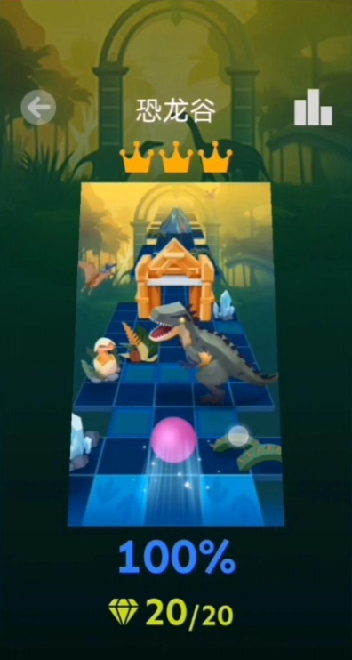 这可是游戏里第一个以恐龙为主题的关卡,难度比《几何迷阵》、《像素》和《世界杯》还要高一些。