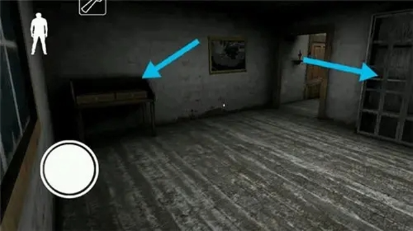 下楼梯后左边的地板上有一根黑线,从上面走过铃铛会响,需要注意。楼梯旁的柜子里可以躲,柜子对面有一个门,里面可能刷东西。柜子旁边有一个门通向地下室(由于画面较暗,所以不大容易发现),同时奶奶的出生地就是地下室,所以萌新不要一开始就往地下室跑哦。最后说明一下,以后就不提示了。墙上的画,照片,小物件等都是可以被碰掉的,所以走路时尽量不要贴墙。