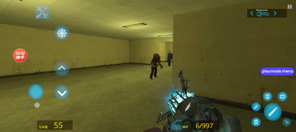 4、默认武器可移动物体,选择需要移动的物体后,长按开火键锁定后,在一直长按的状态下滑动开火按钮