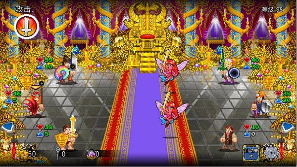 雇用一堆裸男兄贵出城开荒去吧,游戏有自动战斗,战斗中主界面右下角齿轮图标,里面种的“Auto-combat”选项就是自动战斗了,切换成On,就可以看一堆兄贵狂撸了。