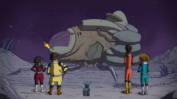降落后等待犬吠剧情触发,然后探索地点中多出流水线,去流水线探索能带回破损的机械狗。几天后触发修理剧情,打火机、书、胶带随便选哪个都行(亲测均可),再过几天提示找零件,探索地点中多出墓地,去墓地或博物馆探索均能带回零件。接下来触发充电剧情,给电池即可。然后到达分支点,给机械狗装饰,这里一定要选智力。再过几天触发充能,会清空你的电力,然后要你派人出去,随便选一个即可。之后触发新飞船结局。
