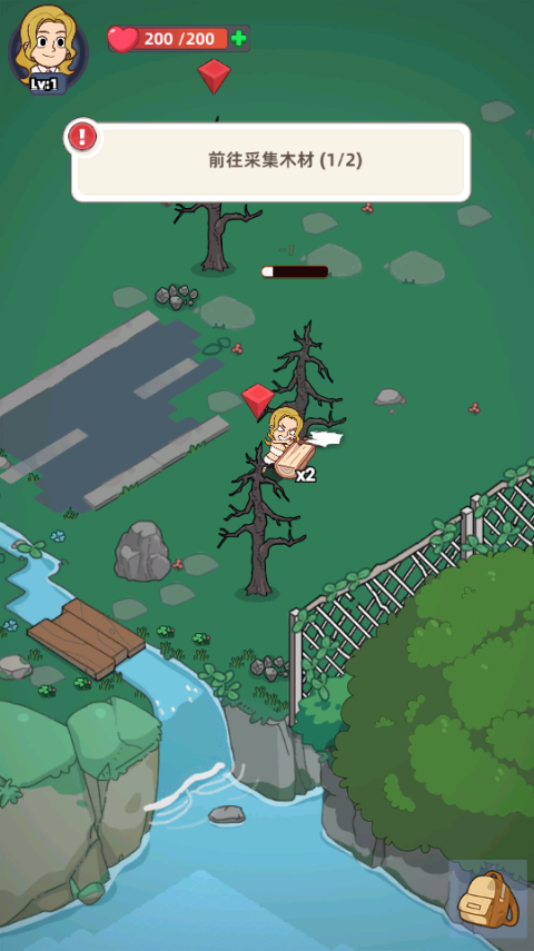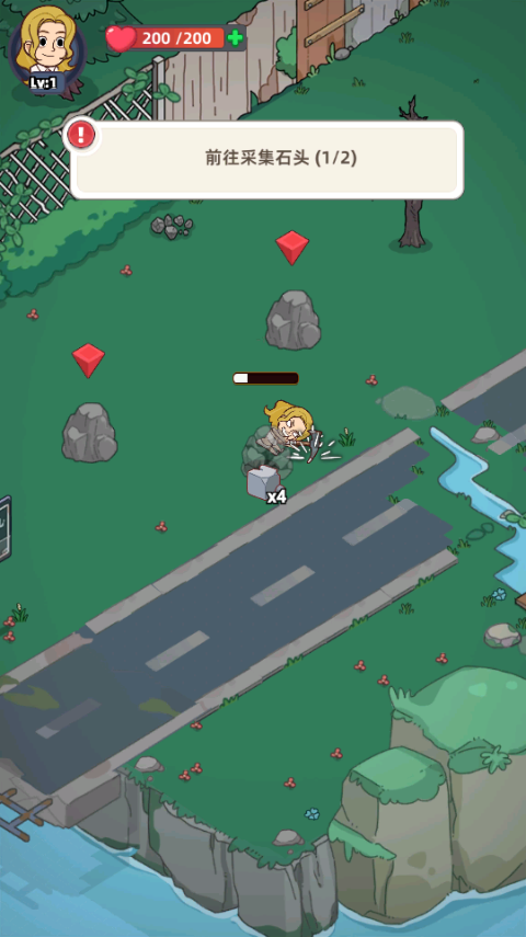 2、进入游戏先根据提示前往采集石头,直接走到石头面前,就可以自动采集。