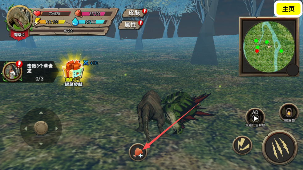 6、当你击杀其他恐龙或生物后,点击“进食”按钮,可吃掉该生物,获得额外经验和奖励