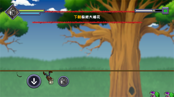 3、来到游戏内可以看到我们操控的僵尸来躲避植物的进攻。
