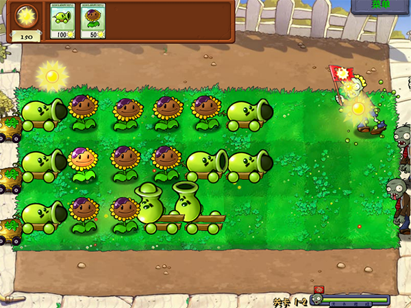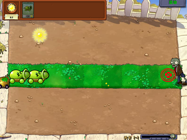 2、然后开始游戏,初始我们只有一个豌豆小炮。