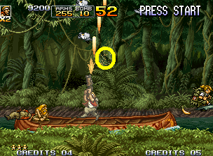 这边要边闪直升机的子弹边攻击右边的小兵(一次只有一只,而且是隔一段时间才出来,要自己抓时间攻击画面右端)。