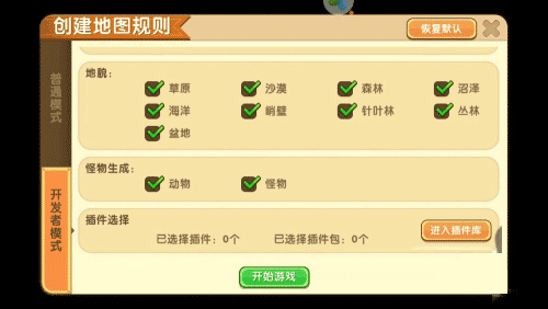 1、点击创造新世界,选择【开发者模式】。