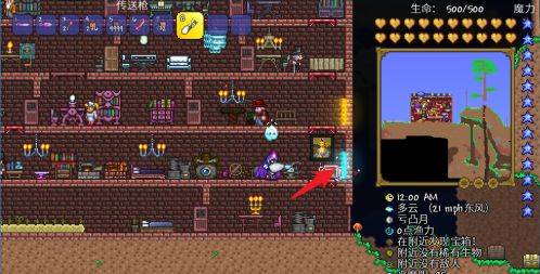 3.将传送枪放置在快捷物品栏中,就可以使用了。