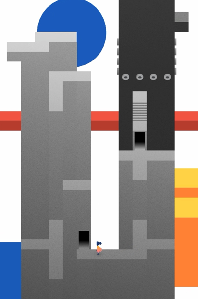 来到第一个场景,玩家要先移动红色建筑,让其成为桥梁,操控小人通过,再次移动建筑,小人就能到达门处。第二个场景,第一步先上楼梯,转动轴承,移动建筑,让小人先上固定建筑,重复操作,点击按钮,场景变化,玩家又需要转动轴承,让小人能够按另一个按钮,然后玩家就可以从传送门直接传送至终点门所在地了。