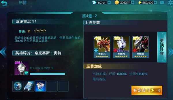 奥特曼传奇英雄7723版普通副本第四章打法介绍