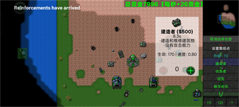游戏基本操作为:单击选中单位,双击选取同类单位,长按屏幕可圈选范围内部队,双指拉框可进行区域多选。