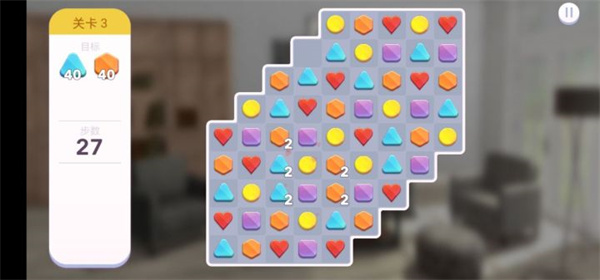 4、在买家具的时候没有钱怎么办,我们先来做做任务赚钱,根据目标来进行消除,没过一关则可以获得奖励。