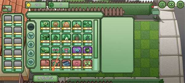2、选择上场植物点击开始战斗