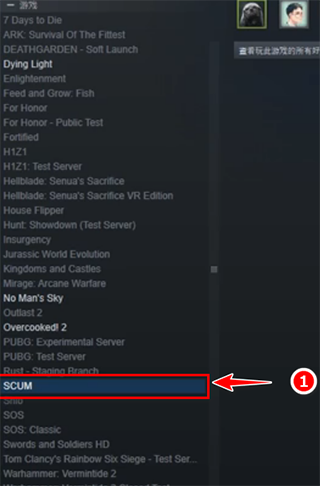 1、在游戏平台找到游戏SCUM的名字。
