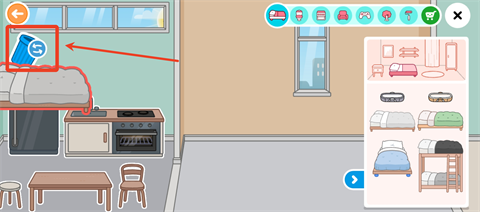 2、点击家具按钮,选择你喜欢的家具拖动放置,点击家具上方箭头可以更换方向。