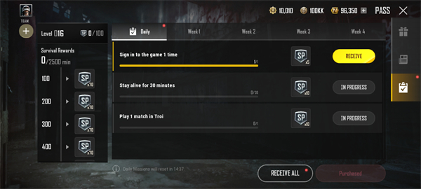 通行证提供每日和每周任务,帮助生存者提升通行证等级!