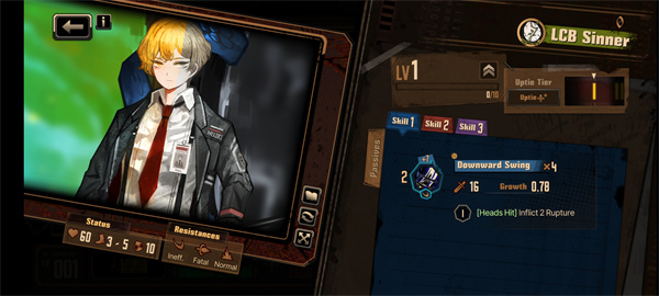 该罪人的成长经历十分坎坷,但即便明白这一点,他在与人交谈时也仍然十分显眼:他总是非常惊讶,或是愁眉苦脸。他并不擅长战斗,看到内脏之类的东西时也会显得很慌乱,鉴于您的手下有不少脾气暴躁的罪人,我们推荐您采取正向积极的方法培养他。该罪人有着连他自己都未曾意识到的凶恶眼光,这是件好事——假以时日,他一定能成为我们公司的“专家”。