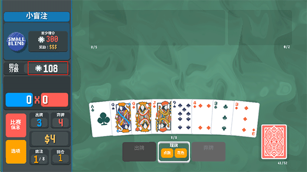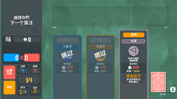 7、回合结束后若达到盲注要求相应分数即为胜利;