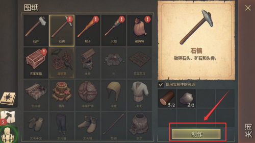 3、在【图纸】界面选择【农家宝箱】制作,它可存放个人物品,提升资源管理能力,最多建造20个。