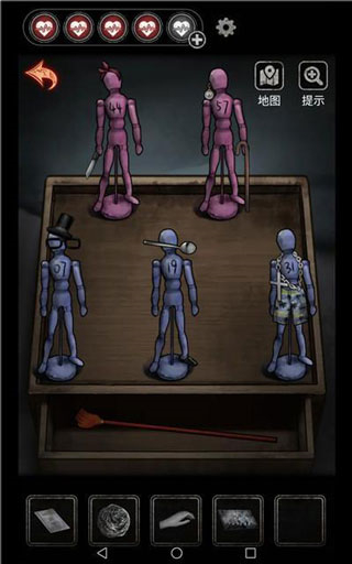 拼图。此处建议从左往右拼,谨慎操作但也别磨蹭,否则容易被定为多次无效操作或待太久而损失勇气。钥匙开娱乐室。结合话给木偶搭配。